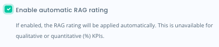 When creating/modifying a Quantitative (Numerical) KPI you will have the option to Enable automatic RAG rating.